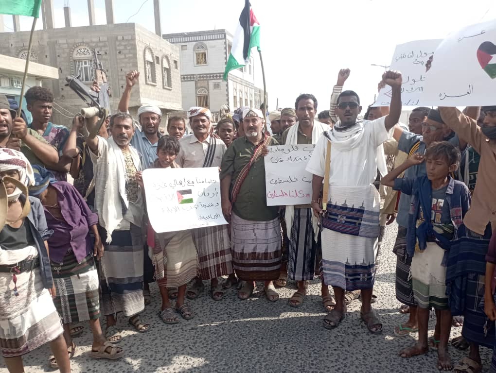 أبناءمديرية أحور ينظمون مظاهرات جماهيرية حاشدة تنديدا بجرائم الاحتلال في غزة