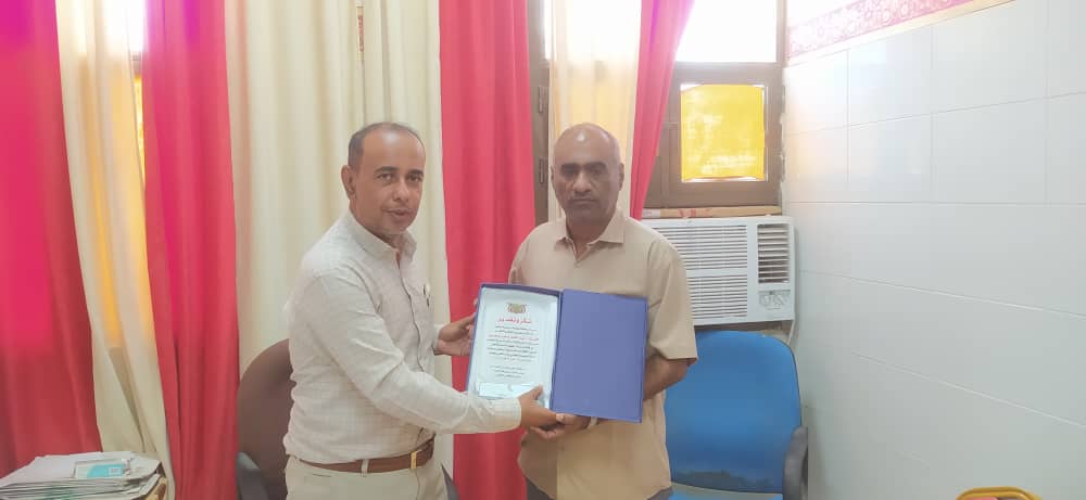 من جانبه تقدم مدير مكتب الصحة بمديرية زنجبار عبدالقادر باجميل بالشكر لمدير عام مديرية زنجبار المهندس مختار الشدادي على هذا التكريم الذي يعطي دافع معنوي نحو الأفضل.