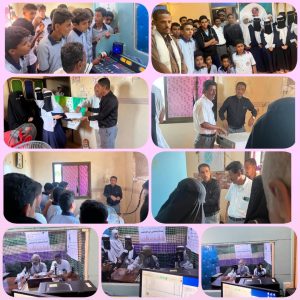 وكان الطلاب والطالبات مفعمين بالحيوية والنشاط لهذه الزيارة التي تهدف إلى التعرف على هذا المنبر الإعلامي كأول راديو مجتمعي في محافظة أبين بالإضافة إلى تطبيق درس عملي في مادة العلوم تحت عنوان “الموجات الكهرومغناطيسية” وعند وصولنا إلى مبنى الإذاعة تم استقبالنا بحفاوة وترحيب من قبل الإعلامي المتميز المؤسس والمدير العام لهذا المنبر الإعلامي المجتمعي الأستاذ القدير عصام علي محمد حيث تم تقسيم الطلاب إلى مجموعتين لغرض تقليل الازدحام والاستفادة اكثر حيث تم نقل الطلاب إلى أولى غرف مبنى الإذاعة وهي غرفة كبيرة المساحة مقسمه إلى جزئين الجزء الأول الاصغر حجم عبارة عن استديو البث والجزء الآخر يحتوي على جهاز الصوتيات “نقل الصوت” الذي ينقل الصوت إلى جهاز ال FM الموجود في غرفة مجاوره يلي ذلك تم تعريف الطلاب بجهاز ال FM ووظيفته حيث قدّمَ الأستاذ القدير(صاحب الخبرة الطويلة في الإعلام والحاصل على درجة امتياز في رسالة الماجستير تخصص إعلام)شرح مفصل ووافي عن مكونات محطة الإرسال الإذاعي، كما استعرض المراحل التي يمر فيها الصوت من وقت حدوثة أمام الميكرفون حتى وصوله إلى هوائي الإرسال والإستقبال بالإضافة إلى تعريف الطلاب بوظائف هوائي الإرسال خلال انتقال الطلاب إلى موقع هوائي الإرسال الإذاعي المثبت على سطح مبنى الإذاعة كما عرّف الطلاب بالموجات الكهرومغناطيسية وعلاقتها بالمجال الكهربائي والمغناطيسي، كما اشار إلى بعض خواص الموجات الكهرومغناطسية، يلي ذلك طرح الطلاب والطالبات عدد من الاسئلة والاستفسارات حول ما شاهدوه والذي اجابهم عنها مشكوراً المدير العام بابتسامته اللطيفة وبسعة صدر رحب.