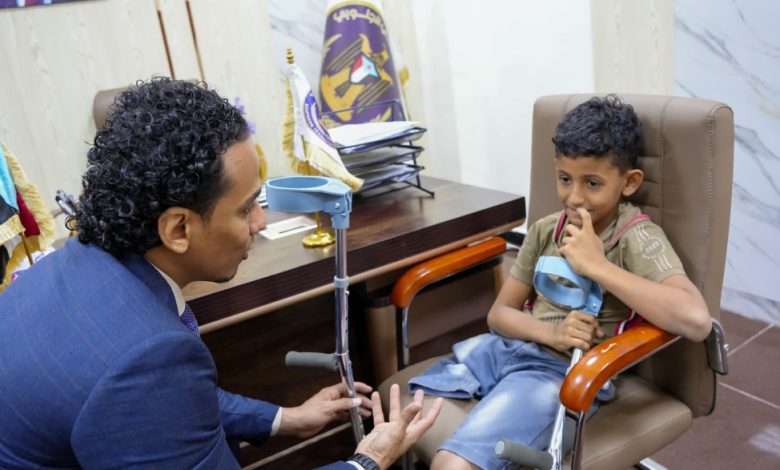 رئيس انتقالي العاصمة عدن يلتقي الطفل منصور مروان “جريح حرب 2015م”