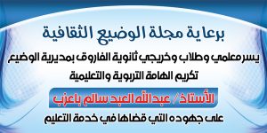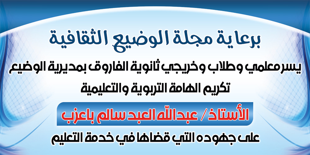 ورفعت هيئة تحرير مجلة الوضيع الثقافية اسمى آيات الشكر والتقدير بأحرف من النور وسطور من الوفاء وقناديل من المحبة للاستاذ باعزب،