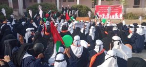 كما قدم فريق من طالبات الثانوية انشودة تضامنية مع طلاب فلسطين.