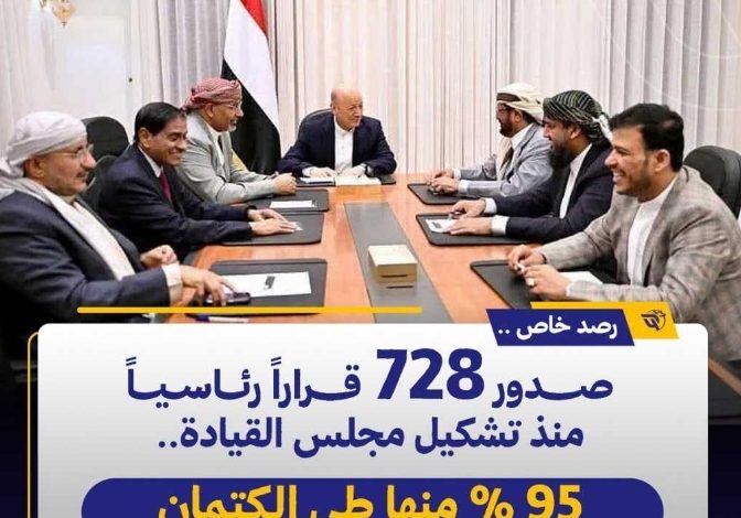 رصد خاص: صدور 794 قراراً رئاسياً منذ تشكيل مجلس القيادة.. 95% منها طي الكتمان