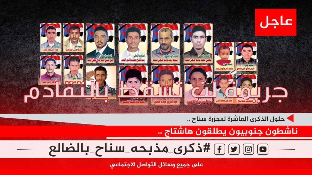 سياسيون يطلقون هاشتاج #ذكرى_مذبحه_سناح_بالضالع تزامنًا مع ذكراها الـ(10)