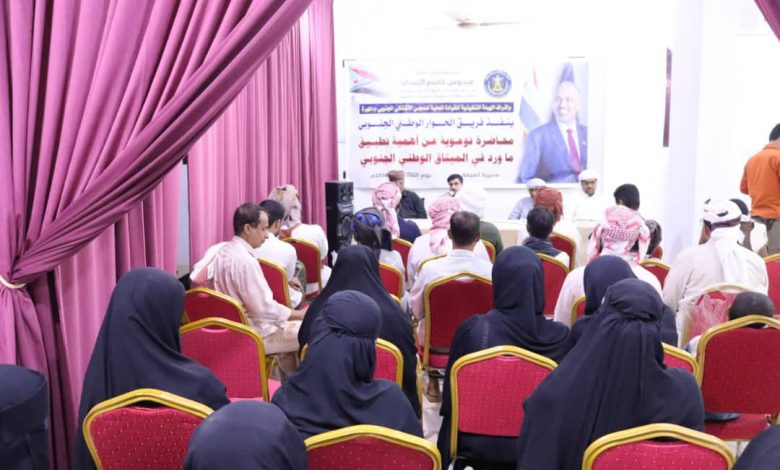 فريق الحوار الوطني الجنوبي وانتقالي المهرة ينظمان محاضرة توعوية عن أهمية تطبيق الميثاق الوطني الجنوبي