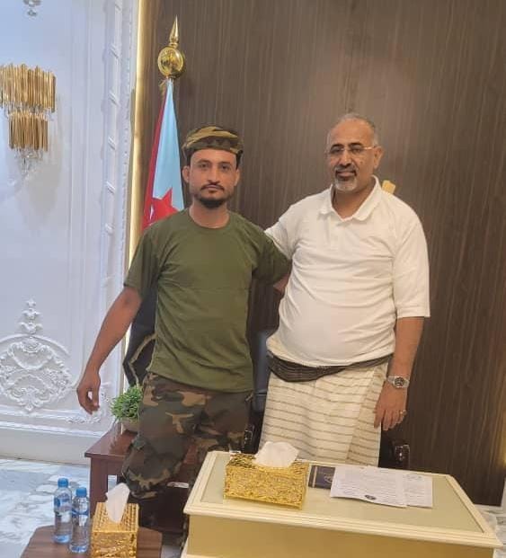 الرئيس القائد عيدروس قاسم الزبيدي يلتقي بقائد كتيبة الطوارئ بالضالع أحمد محمود