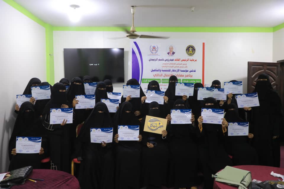 مؤسسة الازدهار للتنمية تختتم برنامج “مهارات الاتصال الذاتي” بمدينة المكلا