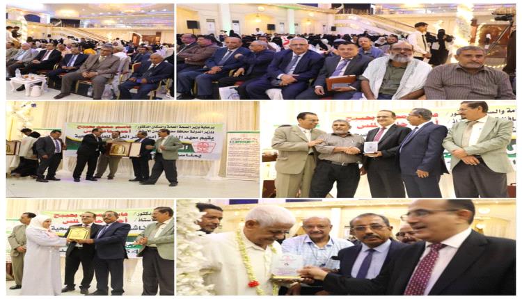 الاحتفالية التي حضرها وزير الصحة العامة والسكان الدكتور قاسم محمد بحيبح تضمنت تكريم عدد من المؤسسات والهيئات والأشخاص والعمداء السابقون وأوائل الطلاب بالدروع التذكارية والشهادات التقديرية ..كما تم عرض فيلم وثائقي تناول مراحل التطور المختلفة التي مر بها المعهد منذ تاسيسه وحتى الوقت الراهن