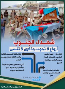 شهداؤنا هم أنبل وأعظم من أنجبتهم أرض الجنوب الطاهرة في الماضي والحاضر، تتلاشى التضحيات أمام تضحياتهم، ويقف الجميع إجلالا لما صنعوه من مجد سطّروه بدمائهم الزكية.. رحلوا عن دنيانا بعد أن كتبوا مآثرهم في أنصع صفحات التاريخ الجنوبي وتركوا للأجيال دروسا خالدة في حب الوطن والتضحية لأجله.