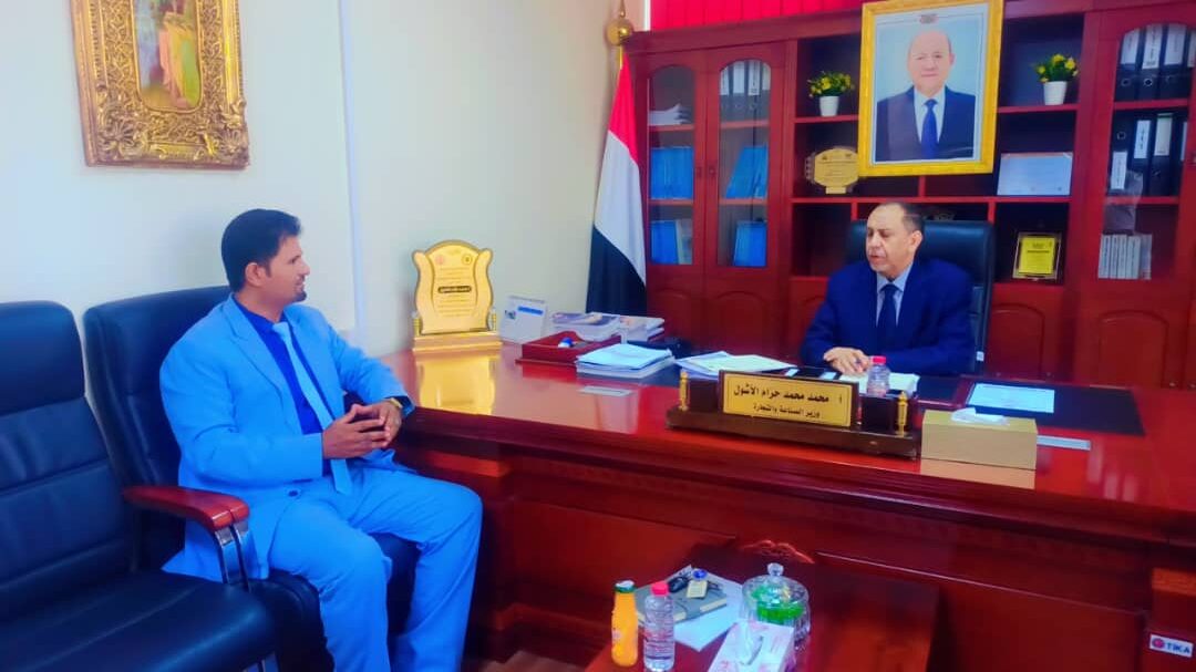 وزير الصناعة والتجارة الأشول وممثل الأكاديمية العربية الدكتور باعزب يناقشان مشروع القدرة على الصمود