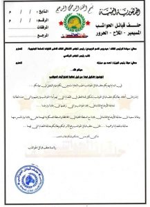 في البداية يهديكم حلف قبائل الحواشب اطيب التحايا متمنيا لكم التوفيق والسداد في مهامكم الوطنية، وبالإشارة الى الموضوع أعلآه، فإن حلف قبائل الحواشب يطالبكم بسرعة تشكيل لجنة للنظر في القضايا التي تهم أبناء الحواشب وأرضهم، وتأتي هذه المطالبة من منطلق الحرص على معالجة الأوضاع القائمة في بلاد الحواشب والتي نرفضها في بلادنا وأرضنا.