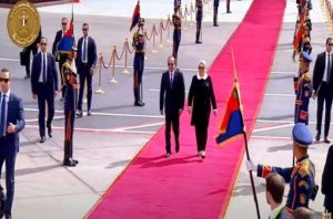 وكان الرئس عبدالفتاح السيسي، وقرينته السيدة انتصار السيسي، في مقدمة مستقبلي الرئيس التركي رجب طيب أردوغان، وعقيلته.