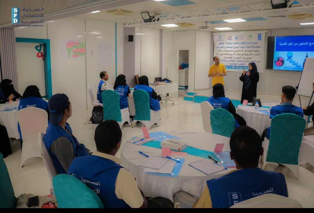 ضمن مشروع تفعيل وتحديد أولويات المجتمع بالمشاركة لمنحة البنك الدولي السابعة-محافظة حضرموت، افتتح ضابط التدريب والدعم المؤسسي بالصندوق الاجتماعي للتنمية فرع المكلا الأستاذة منى أحمد العمودي أعمال الدورة التدريبية الخاصة بآلية برنامج التمكين المجتمعي وإعداد خطط التكيّف المجتمعية بمدينة المكلا.