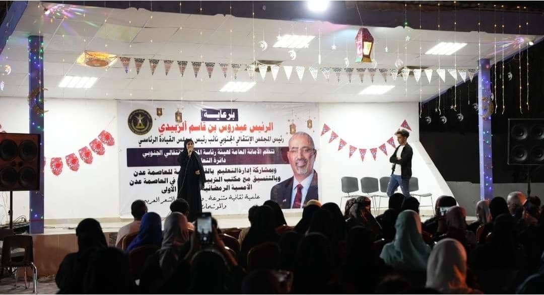 نظمت دائرة التعليم بالأمانة العامة لهيئة رئاسة المجلس الانتقالي الجنوبي، مساء أمس السبت، بمشاركة إدارة التعليم بتنفيذية انتقالي العاصمة عدن، وبالتنسيق مع مكتب التربية والتعليم بالمحافظة، الأمسية الرمضانية الطلابية الأولى، برعاية الرئيس عيدروس الزُبيدي، رئيس المجلس الانتقالي الجنوبي نائب رئيس مجلس القيادة الرئاسي.