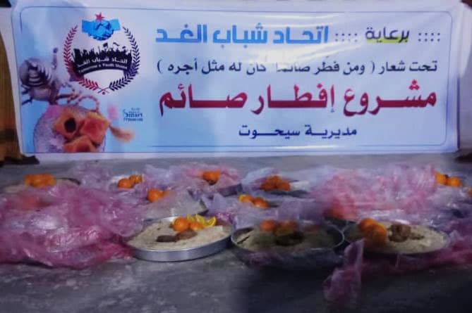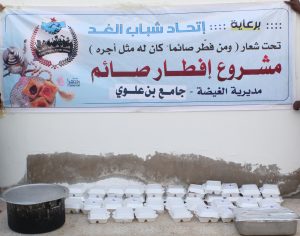الجدير بالذكر إن مشروع إفطار صائم مستمر من الأيام الأولى لشهر رمضان المبارك.. ضمن فعاليات ومشاريع مختلفة ينفذها اتحاد شباب الغد في مختلف مديريات محافظة المهرة .