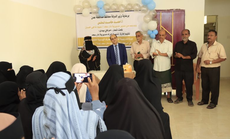 وخلال عملية التدشين أشاد مدير عام المديرية بالحضور الافت لهذه الدورات التدريبية التي خصصت لعدد من المعن وهي الخياطة ، طباخة المعجنات، الكوفير صناعة البخور نقش الحناء ، مؤكدا على أهمية تنشيط دور المرأة في كافة المجالات واعطاء المساحة الكافيه لابراز المجالات المهنية والحرفيه وتعدد المجالات التي تواكب تطورات العصر والذي تسهم في إشراك المرأة في سوق العمل المحلي ورفع عجله التنمية وبناء القدرات البشرية الإجتماعية والاقتصادية، واعتبرها جزء من أولوياته العملية.