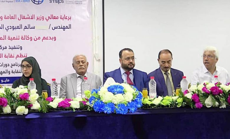وزير الأشغال يدشن برنامج دورات بناء القدرات الهندسية لمنتسبي نقابة المهندسين اليمنيين بالعاصمة عدن