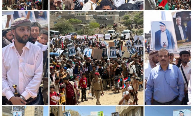 لحج..الآلاف يرفعون صور شهداء آل الرشيدي في المهرجان التراثي الشعبي في منطقة الموسطة بيافع