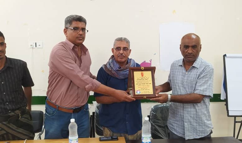 قام صباح اليوم رئيس اللجنة المجتمعية م / زنجبار الاستاذ أيهاب أحمد فرج بتكريم مدير مكتب الصحة العامة والسكان بمديرية زنجبار عبدالقادر باجميل بدرع المدير المثالي بالمديرية نظير جهوده وتفانية في عمله.