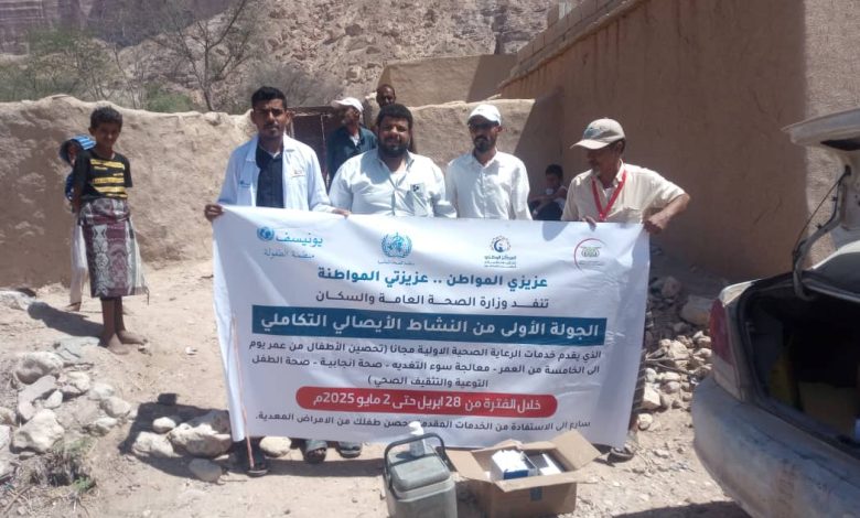الذي تنفذة وزارة الصحة العامة والسكان الجولة الأولى من النشاط الأيصالي التكاملي الذي يقدم خدمات الرعاية الصحية الأولية مجاناً (تحصين الأطفال من عمر يوم إلى الخامسة من العمر ومعالجة سوء التغذية ،وصحة انجابية ،صحة الطفل والتوعية والتثقيف الصحي ) خلال الفترة من 28 ابريل وحتى 2 مايو 2025 .