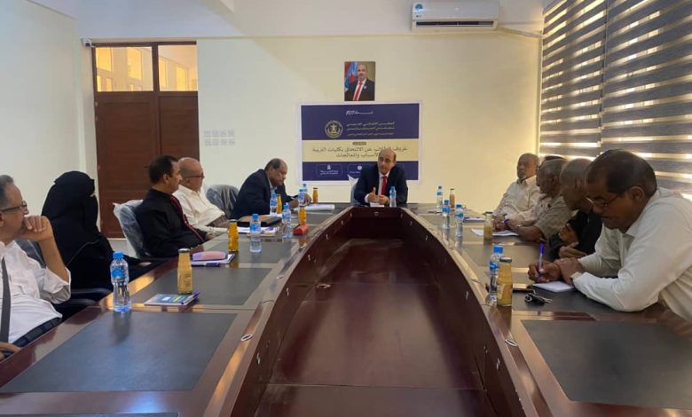 أقامت اللجنة الاستشارية للتعليم العام والجامعي والمهني بمجلس المستشارين للمجلس الانتقالي الجنوبي، اليوم الاثنين، في مبنى الجمعية العمومية بالعاصمة عدن، حلقة نقاشية بعنوان “عزوف الطلاب عن الالتحاق بكليات التربية.. الأسباب والمعالجات”، بمشاركة نخبة من الأكاديميين والمهتمين بالشأن التعليمي.