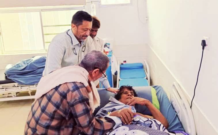 وخلال الزيارة أطلع الاستاذ حسن غيثان من الأطباء على الحالة الصحية للفنان عوض احمد الذي يعد أحد أبرز الشخصيات الفنية على مستوى الساحة الجنوبية ومحافظة أبين خاصة عملت على إبراز الموروث الثقافي للمحافظة.
