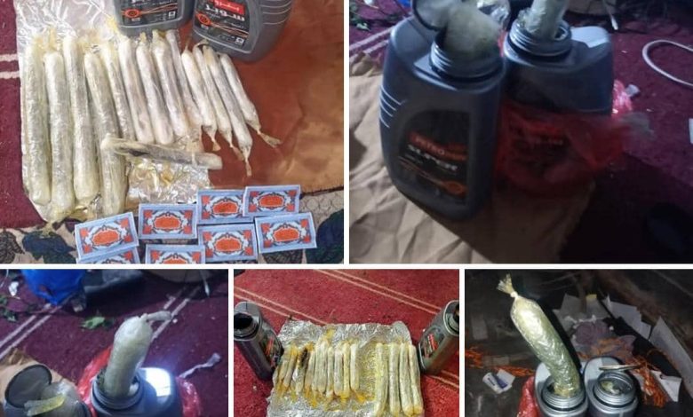 تمكن أفراد نقطة عسد الفاي بقوات خفر السواحل بمحافظة حضرموت، اليوم، من إحباط محاولة تهريب منظمة لمادة الحشيش المخدر، وذلك بعد ضبط كمية تقدّر بنحو 2 كيلو جرام من المادة المحظورة، كانت مخفية بطريقة احترافية داخل عبوات زيت سيارات مموّهة، على متن باص نقل جماعي قادم من محافظة المهرة ومتجه إلى مدينة عدن.