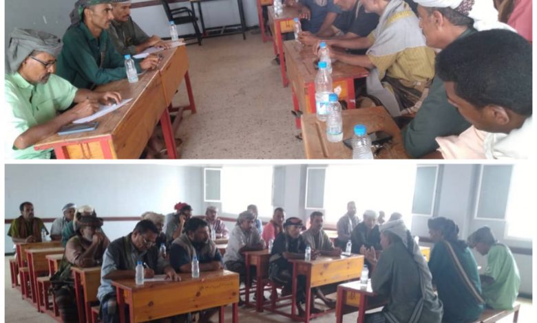 حيث تحدث العولقي والساحمي إلى الحاضرين أن اجتماعنا اليوم حول مناقشة الأنفلات الأمني بالمديرية والخروج بحلول وقرارات صارمة لتأمين السوق ومنع حمل السلاح والوقوف صفا واحدا والتعاون فيما بيننا لتأمين سوق المدينة وانتم كشيوخ وشخصيات اجتماعية على عاتقكم مسؤولية كبيرة كلا في جهته.