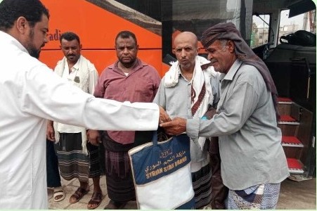 ووصل إلى مدينة جعار باص يتبع شركة القنع للحج والعمره حيث كان في استقباله مدير مكتب الأوقاف والإرشاد الذي قام بتوزيع الإحرامات والهدايا على المعتمرين في أجواء إيمانية عامرة.