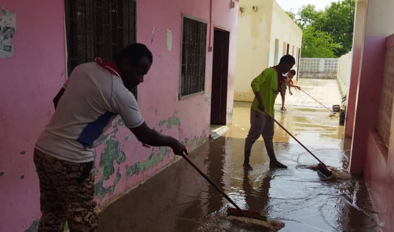 كشافة أبين تبادر بجرف مياه الأمطار الغزيرة من مدرسة خديجة الكبرى