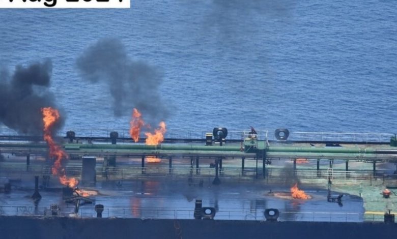 “أسبيدس”: النيران لا تزال مشتعلة بالناقلة “سونيون” منذ هجوم الحوثيين قبل 3 أيام