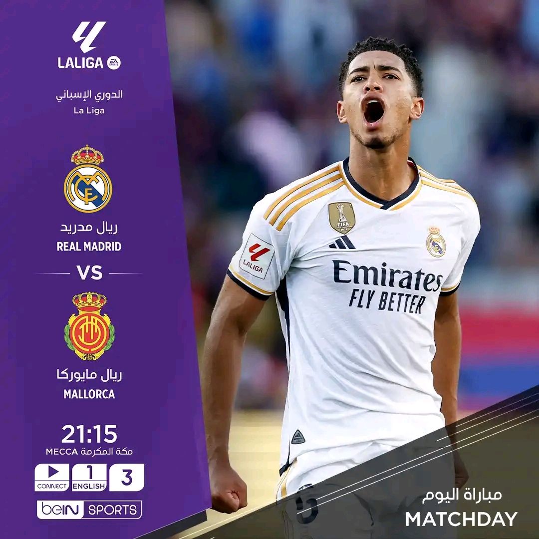 مباراة ريال مدريد اليوم الأربعاء ضد ريال مايوركا تأتيكم مباشرةً وحصرياً على beIN SPORTS 3 في تمام الساعة 21:15 بتوقيت مكة المكرمة.