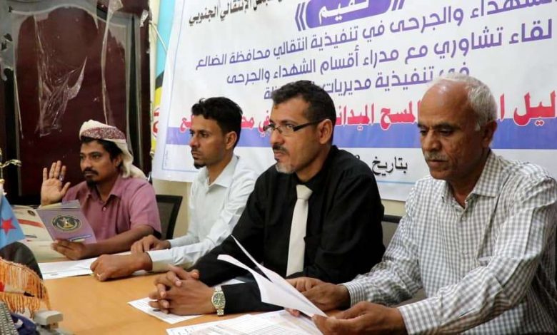 انتقالي الضالع يُنظّم لقاءٍ تشاوريًا لإعداد قاعدة بيانات الشهداء والجرحى