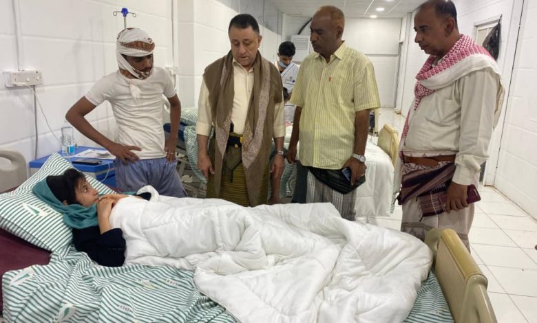 وخلال زيارة الحامد للطالبات وبحضور مدير عام مديرية زنجبار المهندس مختار الشدادي ومدير الصحة بالمديرية عبدالقادر باجميل وأهالي الطالبات أطمئن الحامد على صحتهم ووجه إدارة المستشفى بالاهتمام بهم وتوفير لهم كل سبل الراحة والرعاية.