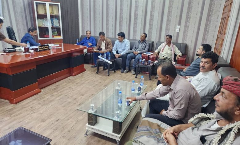 جاء ذلك خلال لقائه بقيادة المديرية بحضور الأمين العام للمجلس المحلي بالمحافظة عبد ربه هشله ومدير عام هيئة الأراضي والمساحة والتخطيط العمراني بالمحافظة محمد الجبواني