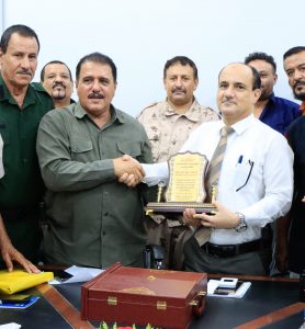 الى ذلك قام اللواء/ أبوبكر بن جبر بتكريم الاستاذ /عبود ناجي مدير عام دارسعد بدرع تذكاري فخم ، شكراً وتقديراً من قيادة شرطة العاصمة عدن ممثلة باللواء / مطهر علي ناجي الشعيبي نظير الجهود المبذولة والدعم الذي يقدمه للقطاع الأمني بدارسعد ومساهمته الفاعله في إنجاح الخطه الامنية في عموم المديرية.