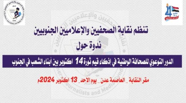 نقابة الصحفيين الجنوبيين تقيم ندوة حول دور الصحافة في تعزيز قيم ثورة 14 أكتوبر المجيدة