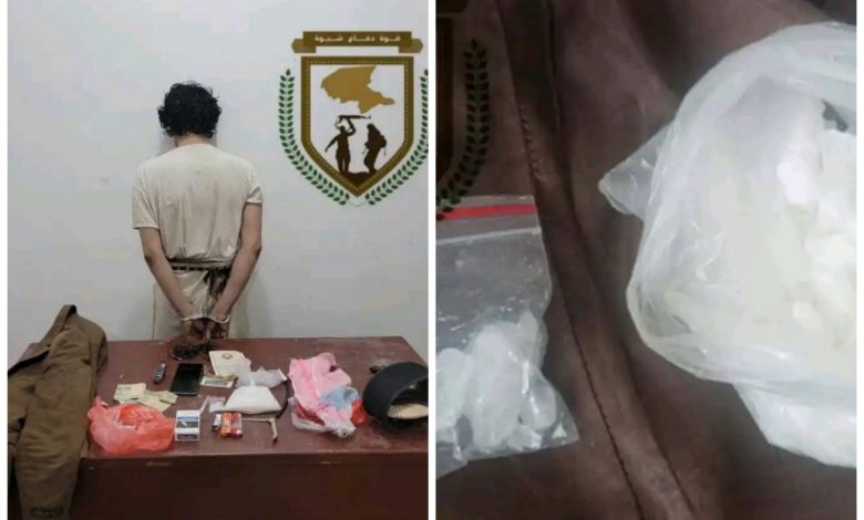 قوات دفاع شبوة تضبط مُرّوج لمادة الشبو المخدر في إحدى النقاط التابعة لها في مدخل مدينة عتق