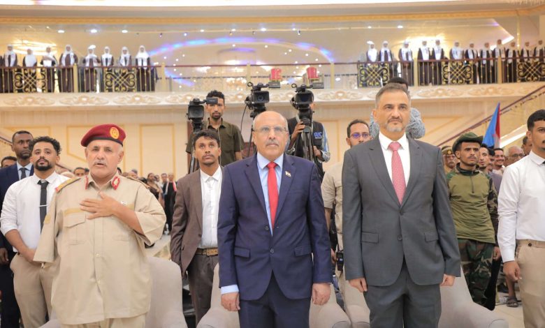 وخلال الحفل الذي حضره قيادات المجلس الانتقالي، ووزراء في حكومة المناصفة، وعدداً من القيادات العسكرية والأمنية، ألقى الأستاذ علي عبدالله الكثيري، القائم بأعمال رئيس المجلس الانتقالي الجنوبي، رئيس الجمعية الوطنية، كلمة ناقلاً في مستهلها للحاضرين تحيات الرئيس القائد عيدروس الزبيدي، رئيس المجلس الانتقالي الجنوبي.