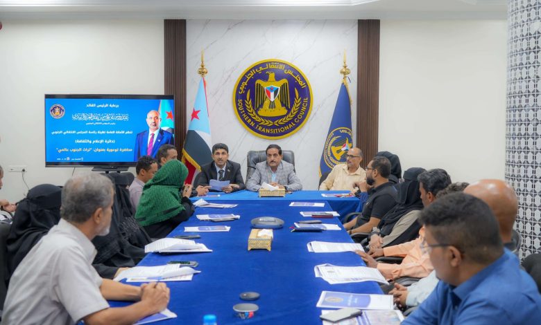 نظمت دائرة الإعلام والثقافة بالأمانة العامة لهيئة رئاسة المجلس الانتقالي الجنوبي، اليوم الأحد في العاصمة عدن، محاضرة توعوية بعنوان تراث الجنوب عالمي : ” حماية التراث الثقافي واجب وطني ” تزامنًا مع اليوم العالمي للتراث، برعاية الرئيس القائد عيدروس قاسم الزُبيدي، رئيس المجلس الانتقالي.