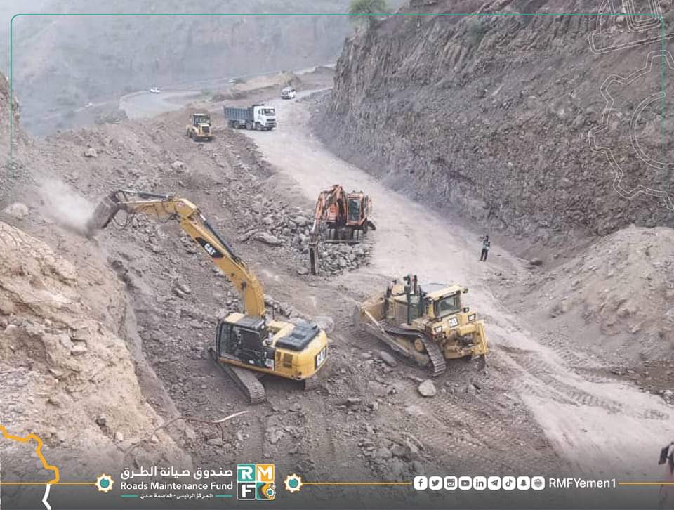 بتمويل صندوق الطرق..تواصل أعمال صيانة نقيل الربض في الضالع