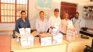 انتقالي حالمين يسلم إدارة مكتب التربية في المديرية عدداً من الكتب المدرسية دعماً للتعليم