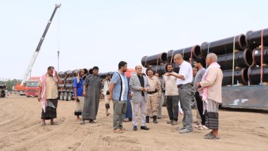 زيارة ميدانية لمعاينة وصول شحنة من مواسير مشروع الخط الاستراتيجي للصرف الصحي بعدن