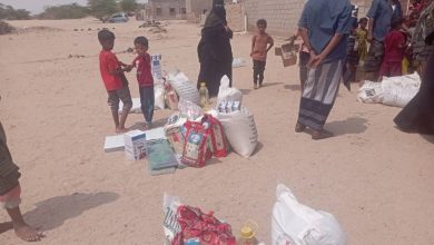 الهلال الأحمر ومنظمات المجتمع المدني يقدمون مساعدات إنسانية لأسر ضحايا احدى حُفر السيول في مديرية أحور