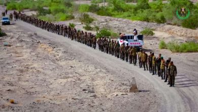 قوات التدخل السريع بالحزام الأمني تنفذ مسيرا عسكريا بأبين
