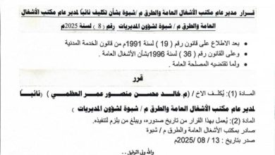 أبين ميديا /شبوة/ محضار المعلم أصدر مدير عام مكتب الأشغال العامة والطرق بمحافظة شبوة الأستاذ عوض أحمد رويس عوض قراراً…