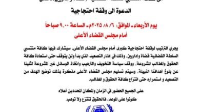 نادي القضاة الجنوبي يدعو لوقفة احتجاجية كبرى أمام مجلس القضاء الأعلى بالعاصمة عدن