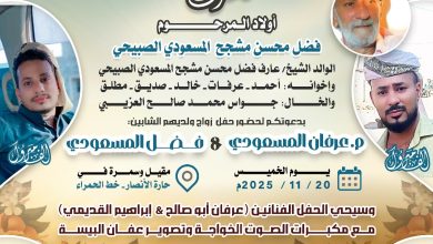 حلف أبناء الحوطة وتبن يزف التهاني بمناسبة زفاف نجلي أمينه العام الشيخ عارف المسعودي