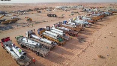 محافظة شبوة” تستقبل قافلة كبيرة تضم قرابة 100 مقطورة محملة بمعدات وتجهيزات أبراج نقل الطاقة