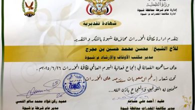 أبين ميديا /شبوة /محضار المعلم جاء ذلك التكريم بعد أن اختُتمت صباح اليوم في المركز الثقافي بمدينة عتق فعاليات الأسبوع…